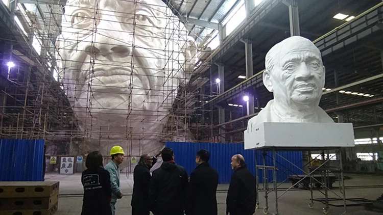 I 2014 konkurrerte fem kinesiske og utenlandske kunststøperier hardt om kvalifikasjoner, tekniske garantier, ingeniørtilbud, ytelse osv., og bestod til slutt den strenge inspeksjonen og vurderingen av team fra USA, Storbritannia, Singapore og India. Tongqing Company har sterk omfattende styrke og god ytelse. Selskapets omdømme og rimelige pris vant anbudet. 10. september 2016 ble byggeordren utstedt. Under ledelse av selskapets styreleder Chen Zhenbo jobbet selskapets team sammen, organiserte nøye og konstruerte vitenskapelig, ved hjelp av avansert 3D-skanning og forstørrelsesprosess for å støpe, i henhold til de forskjellige komplekse geometriske flatene til bronsebildet. Sandstøping og gipsstøping med tapt voks ble brukt til å fullføre produksjonen av 22 900 kvadratmeter kobberstøpegods på bare halvannet år. I mars 2018 ble installasjonsprosedyren lansert. Den indiske siden ga fullt samarbeid. Under forutsetningen om å sikre kvalitet og sikkerhet planla selskapet vårt rasjonelt, styrket ledelsen på stedet og promoterte på ulike nivåer. 132 installasjonsmedarbeidere på stedet jobbet hardt i 7 måneder. Klokken 10 den 31. i måneden ble prosjektet fullført og levert til indisk side. Statsminister Modi åpnet personlig båndet til bronsestatuen og stenket vievann over den.